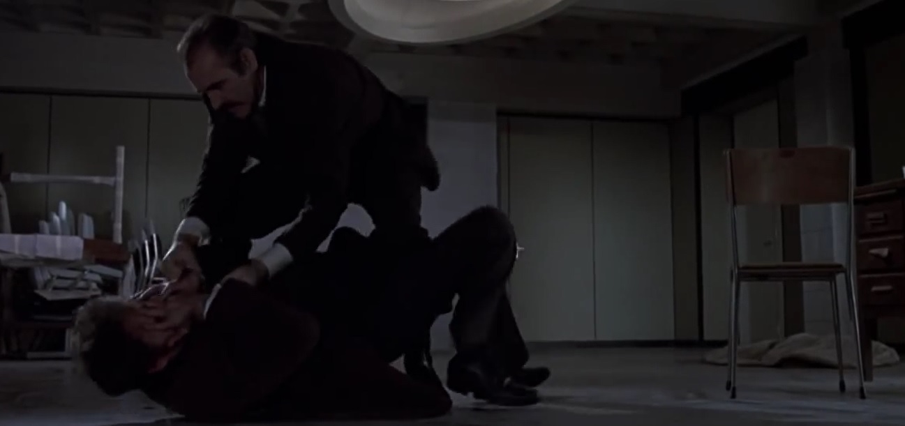 The Offence is a deeply upsetting movie, thoroughly downbeat, and anchored by a riveting performance from Sean Connery, who was clearly working overtime to shed the image of James Bond in his first post-franchise starring role. Directed with customary precision and intensity by Sidney Lumet, this is a stagy, depressing film that pits Connery, playing a dogged British detective who has seen one horrible crime too many, going up against a supposed child rapist/killer, played with menace and questionable intentions by Ian Bannen. Most of the action is confined to an interrogation room, a room which is continually made to feel smaller and smaller thanks to the expert camera placement and air-tight editing, which goes a long way in producing a disquieting and unnerving sense of claustrophobia. There were some early visual cues that reminded me of what Roger Deakins was going for in some stretches of the similarly themed kidnapping film Prisoners, and I loved how Connery never wavered from delving into such a disturbing lead role, one that was clearly intriguing to him for being so far removed from the screen-defining role of 007. The early sequence where Connery discovers the narrative’s chief victim is scarily believable and tears-inducing (for me, anyways…), and it was a further reminder of how when a scene is so well directed, fear and tension cab be so well conveyed without ever resorting to gratuitous tricks. But when Lumet wants you to feel the punches and taste the sweat and blood, he’s not afraid to unleash an ass-kicking, but it’s never unimportant to the narrative, or without motivation from the characters, which always makes for a more honest story. The themes of revenge and transference are probingly discussed and the finale, while mildly ambiguous, allows for the viewer to know that nothing will ever be OK for the people within the framework of this relentlessly grim worldview. United Artists released The Offence in 1973, and while it would be a box office disappointment (it was barely given a European release with the country of France skipped entirely), it has gained a reputation for being a unique item in Lumet’s massive filmography, and a challenging piece for Connery, who should have gotten more respect for his work on this film at the time of its release. Also, it must be noted: Connery says the phrase “bloody” a lot in this film. A bloody ton. It’s sort of comical.