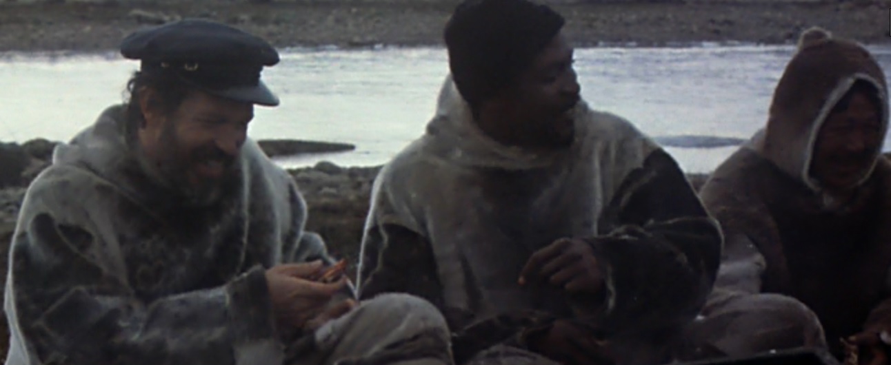 The White Dawn is a rugged, cold, manly film, directed with an intense muscularity by Philip Kaufman (The Right Stuff, The Wanderers). Released in 1974, the film tells the story of three whalers who become stranded in the Arctic Circle in 1896, and details their rescue by Inuit strangers. Warren Oates, Timothy Bottoms, and Louis Gossett, Jr. are the three men trapped in the barren tundra, unaware of how their cultural differences could potentially lead them down a path of violent conflict with their saviors. Shot on location on Baffin Island in Northern Canada, the film feels desolate and forbidding, with the constant snow and wind peppering the visuals and soundtrack with an icy chilliness that you can feel in your bones. What’s more, the filmmakers employed authentic dialect on the part of the Inuit characters, in many instances sans English subtitles, which ratchets up the tension and the verisimilitude of the entire project. Based on the 1971 novel The White Dawn: An Eskimo Saga, original author James Houston was able to co-write the screenplay with producer Martin Ransohoff and Thomas Rickman (Coal Miner’s Daughter), which details how the whalers ingratiate themselves into the Inuit tribe, and then how they slowly try to take control over the group by foisting their American/European values on a group of people who have become accustomed to a VERY particular way of life. Warren Oates makes the biggest impression (no surprise) out of the trio of rapscallions, playing a boozer who is more than happy to teach the natives the values of the drink and gambling, while Bottoms’s affair with one of the women certainly raises some local eyebrows. But the most impressive aspect of this production was clearly the physical demands that Kaufman placed on his brave crew and dedicated cast, many of whom were clearly amateurs. There are shots that defy logic (especially for the time and on the relative miniscule budget when compared with today’s blockbuster standards), with Michael Chapman’s bleak cinematography offering up a blunt, unassuming, and matter of fact view of this harsh lifestyle, while the musical score by Henry Mancini is appropriate in all respects, never overpowering the story, but contributing to the overall sense of exploration and finally dread that settles in for the characters. This is a macho stuff, and I’d recommend it to anyone who likes survival based cinema.