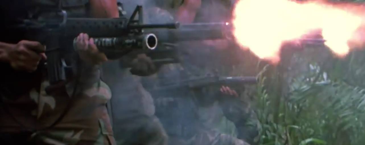 Due to many production arguments (including studio mistrust of unproven McTiernan, who admitted he was frustrated and not “a good sport” about it), much of “the camp-site raid” was actually helmed by Craig R. Baxley (officially credited as 2nd unit director and stunt coordinator) over a 2-3 week period, who did such a great job w/ that sequence that Joel Silver subsequently promoted him with 1988’s Action Jackson.