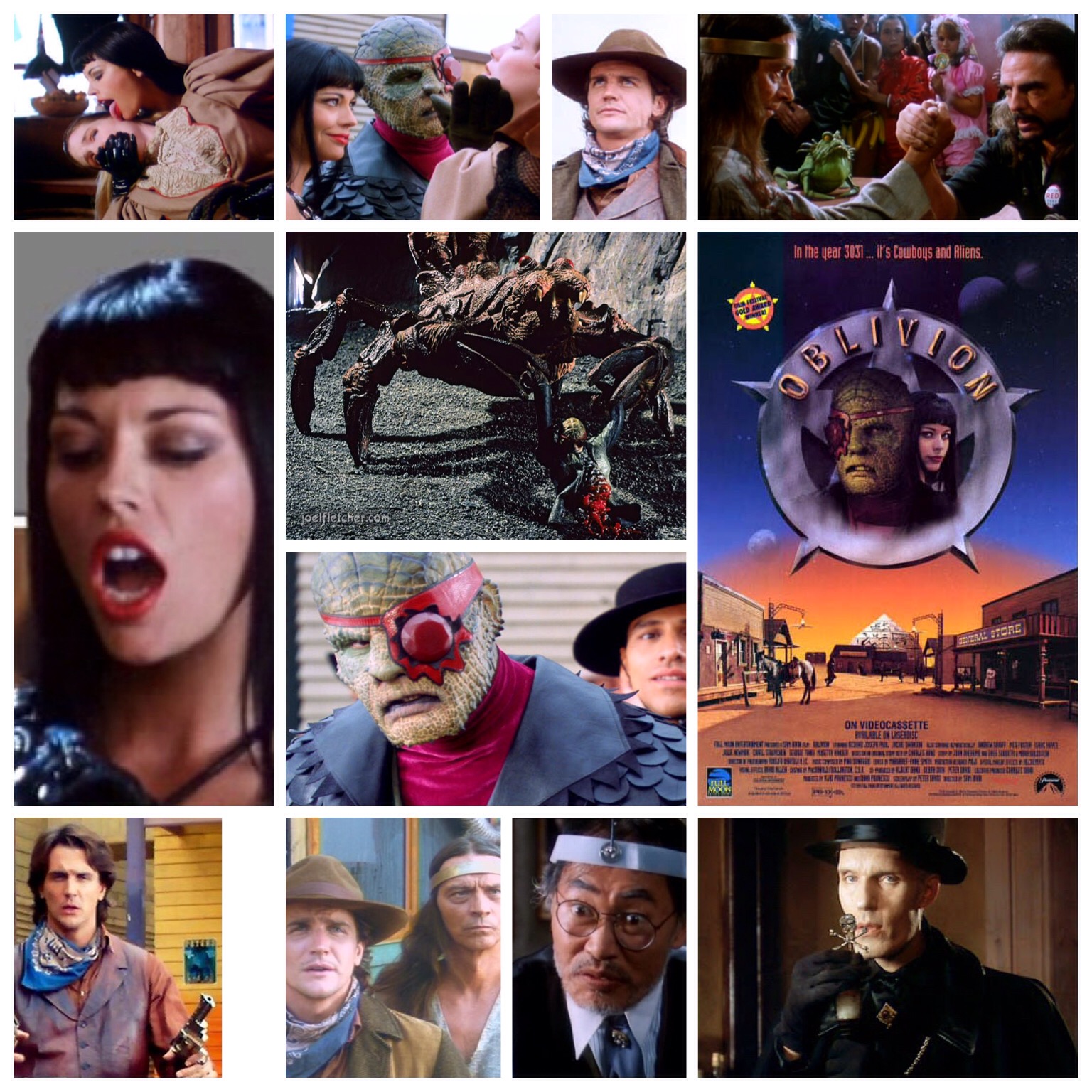 “It’s high noon at the far end of the universe”, the dvd poster of Oblivion states. Years before the underrated Cowboys & Aliens came out, Oblivion came along, and it’s definitely gives the concept a better, and quirkier run for its money. Granted it’s essentially a B movie, and it’s meagre budget shows to the point where it looks like a grade school play. But therein lies it’s charm. It’s got a cast of supremely wacky old west stereotypes played by some surprising, familiar genre faces who you’d never thought to be seen rough housing together in the same flick. It also has some lovingly crafted, creaky stop motion animation that calls Harryhausen to mind and brings to life some super weird alien hybrid thingies that look almost Henson-esque as well. When a lone spaceship lands on the outskirts of an intergalactic desert town, it’s occupant brings trouble along with him. He’s a nasty, one eyed reptilian alien gunslinger named RedEye, played by the inimitable Andrew Divoff. He growling, bad tempered son of a bitch, and his first order of business is to ruthlessly slay the town’s sheriff, and claim it for himself. What he doesn’t count on is the Sheriff’s son (Richard Joseph Paul), a prospector who soon returns to Oblivion looking for answers, along with his Native friend Buteo (the late great Jimmie F. Skaggs). All kinds of townsfolk end up in the crossfire, including drunken Doc Valentine (a priceless George Takei), slinky brothel owner Miss Kitty (Julie Newmar), a cyborg police deputy (Meg Foster), a pawnbroker (Isaac Hayes) and the town’s elegant undertaker, played by Carol Struckyen who some may remember as the giant from Twin Peaks. RedEye has a smoking hot henchwoman and girlfriend named Lash, played by B movie scream queen Musetta Vander, who gets the vibe they’re going for here and sinks her teeth into the material with admirable abandon. The film sticks to its guns despite being obviously silly and somewhat falling apart in a climax that oddly is too darkly shot to make out properly. What it lacks in resources it makes up for in imagination, which it has in spades. Alien scorpions, cyborg deputies, leather clad babes are but a few of the genre mashing treats to be found here. Great stuff. Oh and check out the sequel as well, called Oblivion 2: Backlash, it’s a nice companion piece.