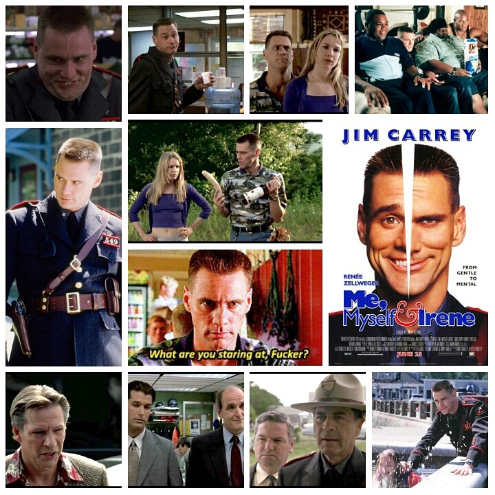 Probably the most ridiculous outing the Farrelly brothers have ever taken us on, Me Myself & Irene cares not a whiff who it offends, how many eyes are rolled or how badly the scales of humour are tipped, or rather yanked, in the direction of extremely bad taste. With the exception of Stuck On You where they played it safe, every dirty little flick in their career is a testament to the utmost raunch in film, the very definition of lowbrow humour and never not flat out totally hilarious. Obesity, dates gone wrong, Amish people, conjoined twins, bowling, physical disability, they’ve tackled every scatalogical venture you could dream up. This time it’s mental illness, in a completely unapologetic depiction that will leave most people red faced, either from fuming or laughing their asses off. Jim Carrey plays Charlie, a meek little pussy who spends one day with his newlywed bride, before she’s whisked away by a black midget played by Tony Cox, who gets all the black midget roles, that little bastard. Charlie has a knack for never standing up for himself, and letting anyone walk all over him. He’s a Rhode Island State Trooper with no balls to back up his badge, and is pretty much the laughingstock of the town. All this bottles up and reaches a boiling point, resulting in a classic Carrey meltdown of rubbery expressions and spastic gutteral incantations. Emerging from the mess is Hank, Charlie’s abrasive, dysfunctional and borderline psychotic alter ego, a result of what the film imagines multiple personality disorder just must be like. Hank causes all hell, and the first time he shows up is the funniest bit in the film, an extended montage of hair raising antics that oddly seems to sum up the Farrely’s career. Charlie/Hank then get caught up in some intrigue involving beautiful Renee Zellweger, back when she was still Renee Zelweger. The scattershot story is just a playground for Carrey though, and this is some of the edgiest R rated mayhem he’s ever caused, guaranteed to arch the backs of some of the more, shall we say… *sensitive* folks we have to deal with running around these days. Charlie has three loudmouth black sons that were dumped in his lap, and they’ve now grown into profane geniuses who love their pops to bits, and it’s here the film finds its only bit of heart amidst the crass vulgarity. The baddies are the classic slimy Farrely cretins, a dirty cop played by Chris Cooper, and an unsavory golf club owner (Daniel Greene). Robert Forster makes a welcome appearance as Charlie’s Trooper boss, and keep a look out for Anthony Anderson, Cam ‘Sea Bass’ Neely, Richard Tyson, Lenny Clarke, and the always hilarious Richard Jenkins. Like I said, this is likely the lowest rung of the ladder in everyone’s career, but it’s a splendidly offensive, colorfully trashy piece of gross out bliss, and definitely the dirtiest of the Carrely team ups. Where else can you see Jim stare a five your old kid down and growl “What are you staring at, fucker?”