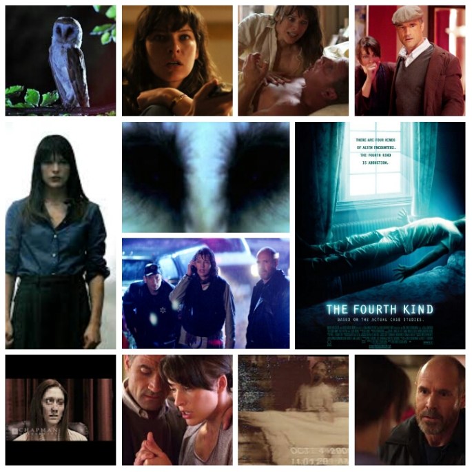 One should go into The Fourth Kind aware of a single important fact: Despite claiming to be based on a true story, and featuring numerous realistically creepy candid accounts, it’s essentially entirely made up stuff. People seemed to have a huge bee in their bonnet about that, but curiously weren’t bothered by it in The Blair Witch Project, another film guilty of the same gimmicks. Cinema is make believe anyways, and if the story works, then what does it matter. This is one of the scariest films I’ve ever seen, thanks to a few well orchestrated and very bizarre moments that transcend what usually gets passed off as horror these days. It tells the alleged story of several incidents and encounters with paranormal beings in and around Nome, Alaska, from the perspective of psychologist Abigail Tyler, played by Milla Jovovich in elaborate, atmospheric reenactments, and by Charlotte Milchard in terrifying newsreel testimonials. Something has come to Nome, and is causing not only disappearances but very, very weird behaviour among the townsfolk, and a general aura of poisonous unease. Abigail does her best to work with patients and locate the source ofnthe trauma without losing her mind or having an encounter herself. Her patients babble and rave, but there’s consistency to their claims, prompting her further belief and summoning of other experts, including a language specialist (Hakeem Kae Kazim) and an old colleague (Elias Koteas), who are equally as stumped. The town sheriff (Will Patton) believes her to be a complete whacko and does everything to hinder her efforts at every turn. Patton starred in another film that’s very similar to this, Mark Pellington’s The Mothman Prophecies, and his grave presence only perpetuates the same kind of eerie supernatural vibe, albeit far closer to outright horror than Mothman. The way the film shows the ‘real’ Abigail sometime following the events chilled me to the bone. She’s broken, haunted and speaks as if there’s a stain on her soul from some otherworldly force. The film knows what gives people that creeping, cold dread fear that we seek so desperatly in the genre, and gave me a fair helping of it. Whether or not the story is even remotely true is trivial; they’ve made a gruesomly scary tale out of it, and that’s what’s important. Also, you’ll never look at owls quite the same way after seeing this. Top shelf horror.