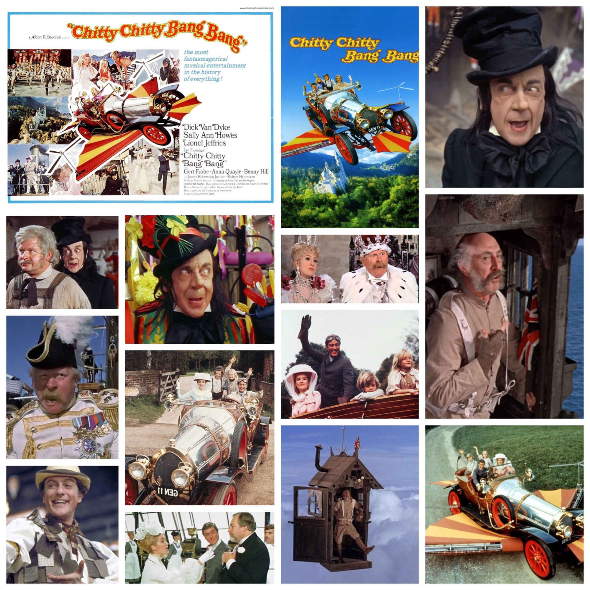 Chitty Chitty Bang Bang is the greatest musical ever made. Fight me. In all seriousness though it stands as a nostalgic beacon of my childhood in a genre that I just never took to, save for a few others in the same boat (The Sound Of Music is class, but that’s a another story). I grew up with Chitty, watched it from a very young age when I was still impressionable, and since then I’ve probably seen the thing over a hundred times as the years passed, with new eyes each time I revisited it at a later age. It’s a miraculous marvel of visual storytelling, a film that truly employs the sentiment “they don’t make em’ like they used to.” They really don’t though, films with this much hands-on imagination, passion for storytelling and ear for music just aren’t a common thing in our newfound age of computer dominated franchise giants. This is a film that is fuelled by wonder and whimsy, a monumental undertaking when you consider it’s length and scope, a pure oasis of childlike escapism, and a thoroughbred bona fide classic. Based on a short, slight storybook by Ian “James Bond 007” Fleming, this is one of the extremely rare occurrences in which a film adaptation surpasses it’s literary source material in every way. How does it achieve this you ask? Two words: Roald Dahl. Dahl, a beloved novelist himself, concocted a scrumdiddlyumptious screenplay that let what was conserved and clipped in the book run positively wild for the film, not to mention dreamed up some achingly beautiful, endlessly catchy songs that have since become timeless. The titular machine is a souped up jalopy that has a few gizmos under it’s hood including the ability to fly and float on water, lovingly built up by master inventor and father of the year for the next ten centuries, Characticus Potts, played by Dick Van Dyke in the performance I’ll always remember him for. After a sincerely charming opening act set in rural England, it’s off to fairytale land as he, his two darling children Jeremy and Jemima (Heather Ridley and Adrian Hall) and lovely Truly Scrumptious (Sally Ann Howes) embark on a dazzling adventure to Germanic country ‘Vulgaria’ to rescue eccentric Grandpa Potts (Lionel Jeffries) and get into all sorts of mischief. Vulgaria is ruled by buffoonish tyrant Baron Bomburst (Gert ‘Goldfinger’ Frobe) and his leggy wife (Anna Quayle), but the real threat is the single scariest villain in cinematic history (don’t even dare argue with me on this one), Robert Helpmann’s Childcatcher, a demonic willy wonka who is pure unbridled nightmare fuel whenever he shows up. The mind boggles at the sheer ambition on display in terms of set pieces here, from the Pott’s gorgeously rickety, unfathomably cozy windmill castle of a home to the Baron’s ornate palace and everything in between, it’s a visual triumph in every way. Better still are the songs, which, excluding one dud from Howes, are all instant classics. Me ol’ bamboo, Toot Sweet, The Roses Of Success, the titular tune that heralds Chitty herself, and particularly a demented little number called Posh sung by Grandpa as his peculiar outhouse of a man-cave dangles on a tow rope below Bomburst’s mini Hindenburg, they’re all fuckin beauties that I’ve been singing along to since I was a wee lad. Added is the giddy presence of people like James Robertson Justice, Desmond ‘Q’ Llewelyn and Benny Hill (as a German, no less) to gild the lining of an already nutty good cast. This film is immortal for me, a jewel in my DVD collection, a nostalgic gift wrapped delicacy to come back to time and time. No matter where I am in my life, the Potts will always be hurtling through the English countryside and soaring over those white cliffs of Dover singing to high heavens about their phantasmagorical machine, and I can sit down and rejoin them any time I like, which I will do over and again as long as time permits.