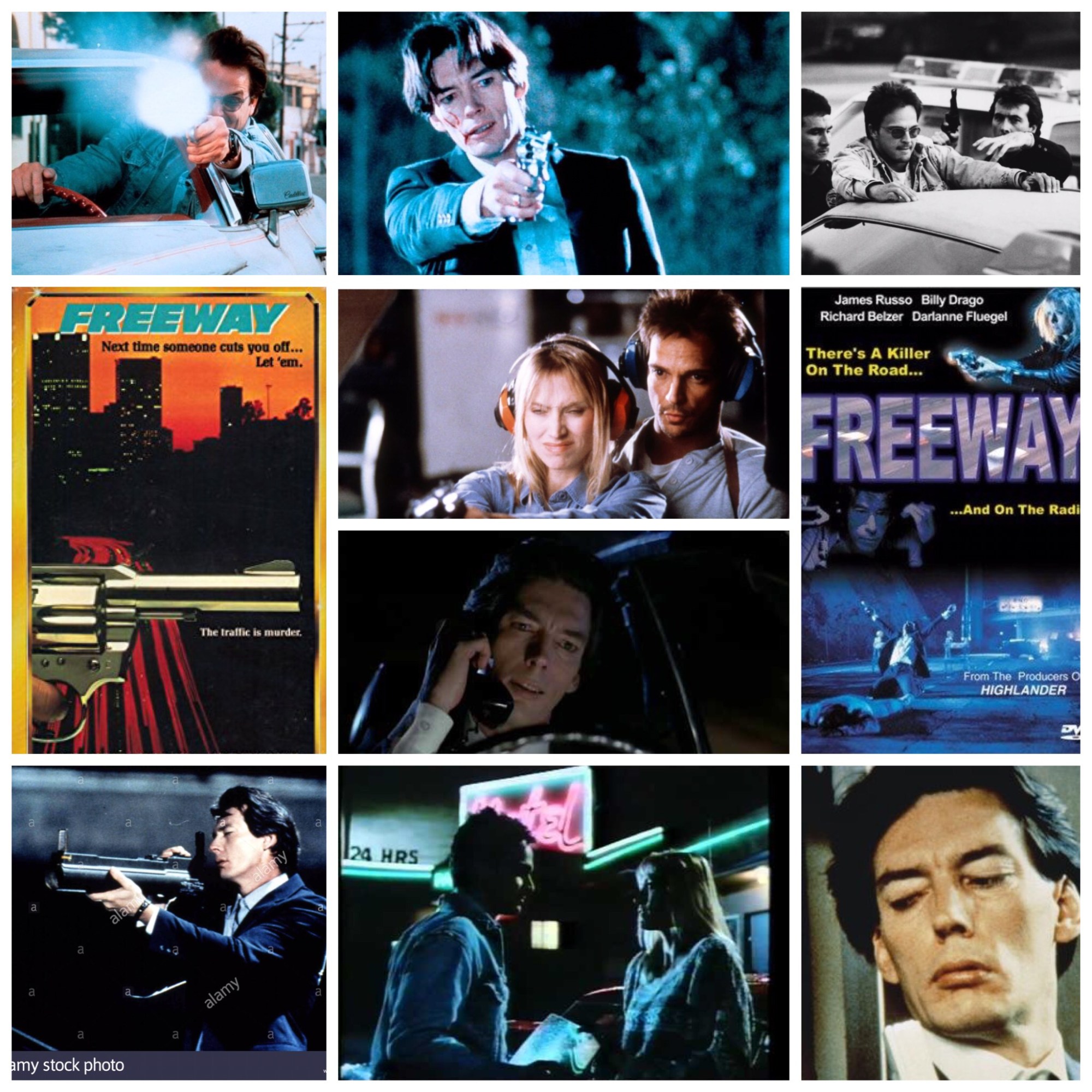 In the vein of highway set psycho thrillers, stuff like Robert Harmon’s The Hitcher and Steven Spielberg’s Duel paved and pioneered the way, fertilizing the ground for countless other similar efforts, some terrific and others not so much. Freeway falls into the former category, an atmospheric little B movie that delivers more clammy thrills than it frankly has any right to. It’s not to be confused with the classic Reese Witherspoon trash-terpiece of the same name though, this is a different animal altogether. There’s a serial killer terrorizing the nocturnal arteries of the L.A. highway system in this, an unhinged whacko in a Lincoln of or some such automobile of equally austerity, firing off love rounds into people’s faces whilst bellowing out bible verses extremely out of context all over the overpass in the wee hours. He’s mostly heard and unseen, but he’s played by none other than Billy Drago when he does show that leering visage, and the man let’s it rip in a performance that should be legendary. He’s hunted by another cool-as-ice character actor, tough guy James Russo as a Detective of few words and tons of action, namely shooting anyone that won’t give answers or spur his leads. There’s a dark, dreamy nocturnal aura to this, love and care put into atmosphere, showing is that the filmmakers, despite working with a low budget, actually give a darn about quality in their work as opposed to a throwaway second tier genre mad dash where the lack of passion is evident. A low rent classic in the realm of homicidal vehicular themed exploitation.