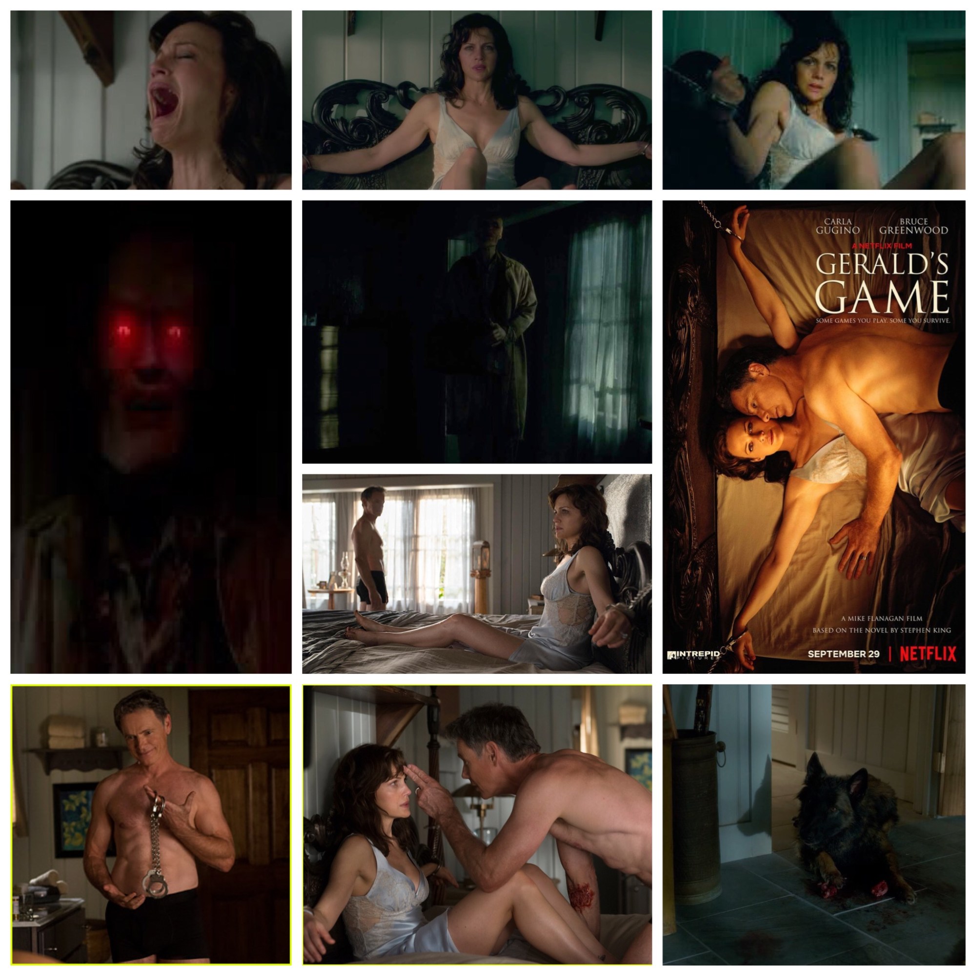 Stephen King’s Gerald’s Game is exactly what horror/thrillers should aspire to be: devilishly well written, engagingly acted, crisply directed and scary enough to wake the dead. Presented on the Netflix platform with their trademark lack of marketing (they tend to hurl out content willy nilly, sans fanfare), it’s just shown up and is already one of the best horror films I’ve seen all year. Carla Gugino and Bruce Greenwood give encore performances and the best work of their careers as a couple who make their way to a cottage in the country, trying to spice up the ol’ marriage. When Brucie has a nice heart attack mid-foreplay (he popped a few of those magic blue pills), Carla is stuck handcuffed to the bed in the middle of nowhere, with no one for company except a mangy stray dog that begins to take chunks out of dead Bruce. So begins a fiercely internal, visceral psychological survival story, a brutal chamber piece that delves into her twisted childhood, troubled marriage and churns forth a tale to curl the pain on the cabin walls. There’s hallucinations, inner monologues, squirm-inducing gore, elliptical mind games and a pseudo-twist ending that had me shuddering into the couch. Gugino has never been more intense, believable or varied in her work, turning this character into something potent and tangible, bringing her past trauma and fight for survival to screaming life. Greenwood is smart, witty and so darkly funny it’s tough now to picture him as the stoic, emotionally shut off archetype he usually has embodied before this film. Additional work from ET’s now eerily grown up Henry Thomas and Twin Peak’s ginormous Carel Stryucken (terrifying here) adds class and distinction. The show belongs to Carla and Bruce, and what a show they put on, feasting on the rich, textured dialogue and playing sandbox in the story that uses depth, character and genuine menace to lasso us right in. In a year that’s seen at least one King novel unforgivably bastardized, and one other given the solid yet flawed and incomplete treatment, it’s reassuring to find one that comes up pretty much perfect in every way. Kudos to Netflix, the two leads and everyone else involved.