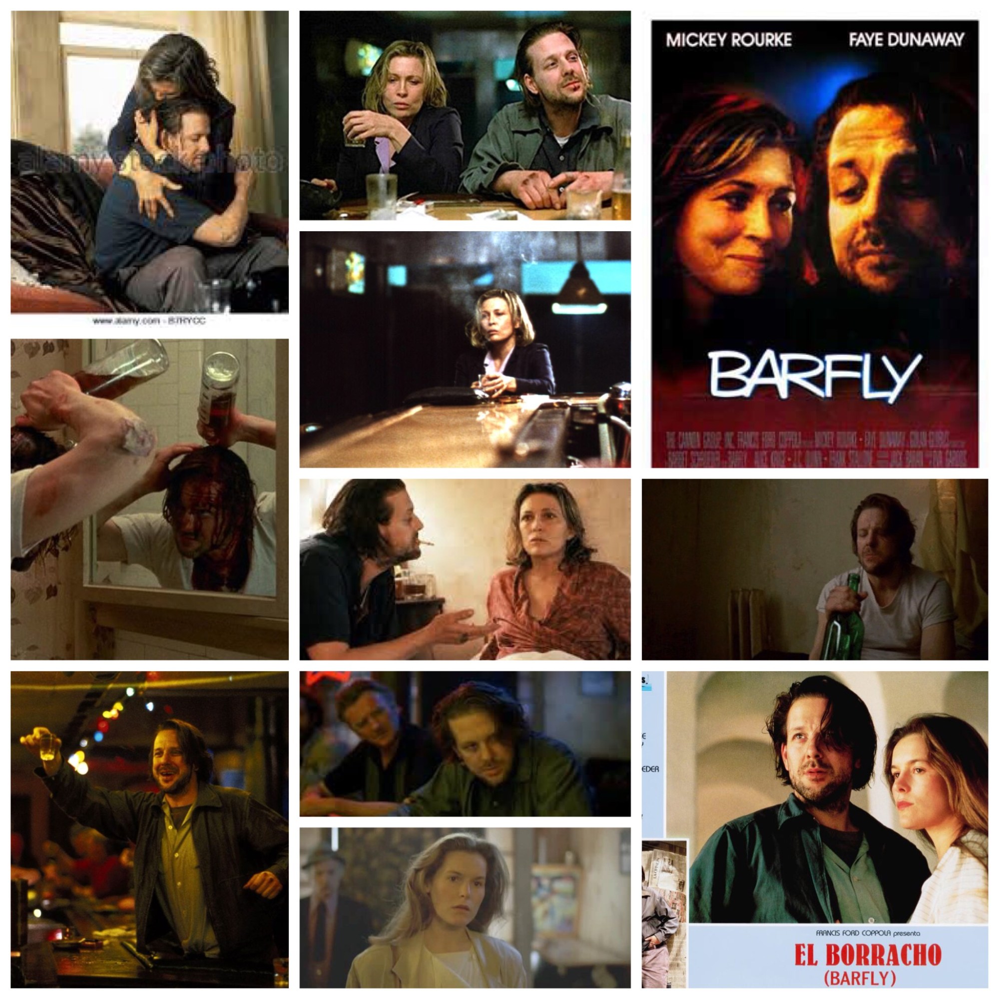 Charles Bukowski’s Barfly requires a specific thing of it’s audience: emphatically try to observe a very particular brand of life, that of the binge drinking drifter in 1970’s LA basin area. If you can do this, it’s a brilliant piece of work to enjoy, and if you can’t, it’ll be an abrasively off-putting slog to sit through. I fell smartly into the former category as the subject matter came.. vaguely close to hitting home, and because it’s just a fantastic movie in itself. Mickey Rourke was at the top of game during the 80’s, and this is one glowing gem of a role for him, one that shows a vulnerable, less macho dipped side of the man no less. Playing a restless, shambling gutter-snipe named Henry Chinaski, he careens through the film consuming any booze he can get his hands on, barely maintaining already dysfunctional relationships and haunting his derelict apartment, as well as that of a fellow rummy he meets in the form of excellent Faye Dunaway, looking equal parts haggard and angelic until we’re not sure what we’re looking at. Chinaski is of course supposed to be Bukowski himself, as the film and it’s fiery script are autobiographical in nature, based on the willfully misanthropic writer’s hazy adventures in backwoods Hollywood during that era. Approached by a publisher (beautiful, articulate Alice Krige, who replaced Helen Hunt) with stars in her eyes for the man and his work, Chinaski gets a taste of life on the other side of the tracks, albeit briefly, an interlude he describes as ‘a cage with golden bars.’ The dives along those strips are his home right to the core, and he’s proud of it. The film is episodic, elliptical and open ended, a glimpse through the window of what it must be like for these people for a time, as the camera lovingly follows them about their ways for a while like a fly on the wall, then loses interest, buzzes off and leaves them in peace without rhyme, reason or resolution, unless of course your sensibilities jive with the meandering, barely sculpted story structure, which I loved. The film has little interest in aesthetics or pleasantries either, showing ugly, mottled alcoholics and layabouts who fill the frames around Rourke and Dunaway like brittle garden gnomes adorning the bar, a far cry from the fresh, powdered faces we’re used to in Hollywood. “Don’t you hate people?” Dunaway laments to him in one scene. “No, but I seem to feel better when they’re not around..” he croons back. It’s that kind of stinging poetry that gives this film, and Bukowski’s career, such lasting weight. Not to be missed.