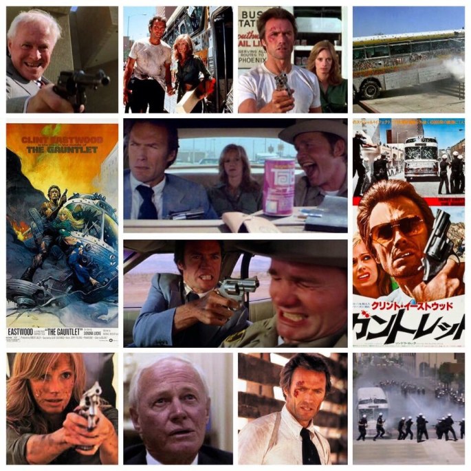 I love scrappy little cop flicks like Clint Eastwood’s The Gauntlet, a short, trashy exercise in exploitation that’s not only a departure from the heady, cerebral detective flicks he does but also miles off of the focused, gritty machismo of the Dirty Harry films. This is a low rent B movie and is proud of it, which is a rare commodity in Eastwood land. Boasting a terminally silly plot, lovably incapable protagonist and more bullets fired than all three Matrix movies stacked together, it’s a great way to spend a Saturday night when you have a hankering for old school action. Eastwood is Ben Shockley here, a disheveled mess of a Phoenix cop, heavily on the sauce and in no mood for the mission his uptight commissioner (William Prince, needing a moustache to twirl in his portrait of unapologetic evil) dispatches him on. He’s to escort a troublesome hooker (Sondra Locke) from Vegas back to Arizona where she will testify at a high profile mob trial. Of course every bent cop and his mother is on their trail, they can’t trust anyone in law enforcement and they’re on their own, forced to run a gauntlet of gunfire and corruption to bring her in. There’s three very odd, very hilarious set pieces that involve gunmen just fucking unloading clip after clip after clip in a way that the you might see on the Looney Toons, until the house they’re firing at *literally* falls apart. That’s the sort of slapdash style the film has, but it works in its dense specificity. Eastwood and Locke have chemistry, and it’s always cool to see the chicks in his action films have their own personality and impact on plot, not just part of the scenery or eye candy. Prince is so nefarious as the Commissioner that one wonders how a man like that ascended the ranks to that position, but in a film where’s he’s allowed to shut down a city block and order the *entire* Phoenix police force to empty boxes of bullets into an oncoming bus that Eastwood rolls up in, it isn’t that much of a stretch to believe. It’s just that kind of film, and I dug it a lot. Oh and look at that epic one sheet of a poster, whoever designed that should get a few medals. Great flick.