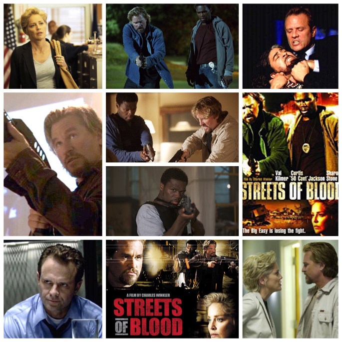 Streets Of Blood more like Streets Of Crud. Maybe I’m being a little harsh but from what I remember this thing is a huge, huge whack of disappointment when you look at the capable, wasted cast and the premise ripe with potential. Val Kilmer and Curtis 50 Cent Jackson are slick New Orleans cops investigating the corruption and death in their department following the aftermath of Hurricane Katrina. Sounds cool eh? Not so much. Most of it is noisy, incomprehensible shootouts in soggy, dilapidated warehouses and faux intense verbal standoffs in dank interrogation rooms that have no payoff because they had no discernible setup or pacing. It’s not the actors faults, they’re not even half bad. Kilmer does a flashy Orleans drawl that echoes his famous Tombstone accent. Sharon Stone even shows up as an ice queen DA,