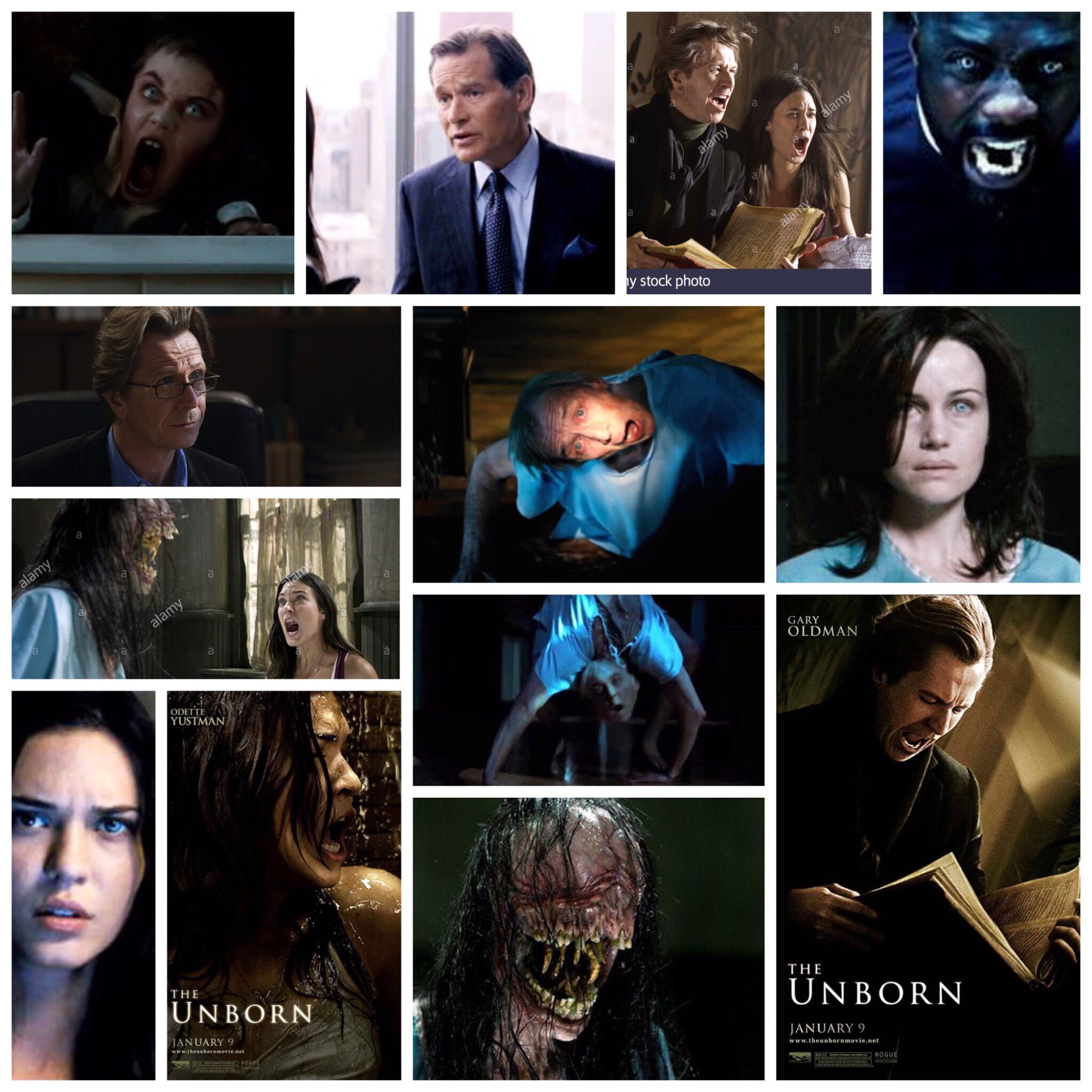 There’s a lot of ideas running around in David S. Goyer’s The Unborn, ideas that a terrific cast do their best with but ultimately this was one big WTF of a letdown, a boring waste of time that deserved better execution than it got. It’s essentially another Exorcist retread, given a twist, with Odette Yustman (whatever happened to her? She was sort of like Megan Fox Lite) playing a girl who is tormented by something called a Dybbuk, some sort of mythological Jewish entity but also just a fancy way of saying demon. It has something to do with her unborn twin who never made it past utero, her institutionalized mother (Carla Cugino, wasted in a heavily cut role) as well as history dating back to Joseph ‘Angel of Death’ Mengele, the infamous Nazi surgeon who had an obsession with twins, a theme that also plays on here. This thing haunts and eventually possesses her, until she finds help from two priests played by Gary Oldman and Idris Elba, in roles beneath their talent. There’s one nicely written scene where she and her boyfriend (Cam Gigandet, who can’t act to save his life) ponder the universe and all its terrors while in bed that would have been better brought to life by different actors. Various scenes show her interaction with her loving father (James Remar), but they’re underdeveloped and feel edited. Mostly it’s just her running from freaky scuttling apparitions, loose plot threads hanging about like wires in an abandoned warehouse and just.. bleh. There’s definitely something there in terms of brainstorming script ideas, but they screwed it up big time by making a haphazard, boring, generically glossy PG-13 dud instead of putting some actual style, personality and genuinely frightening elements in. Big ol’ missed opportunity. It’s a shame, because there’s some neat, spooky special effects thrown at the wall here that deserve a better film, and I’d expect better from Goyer too. Oh well.