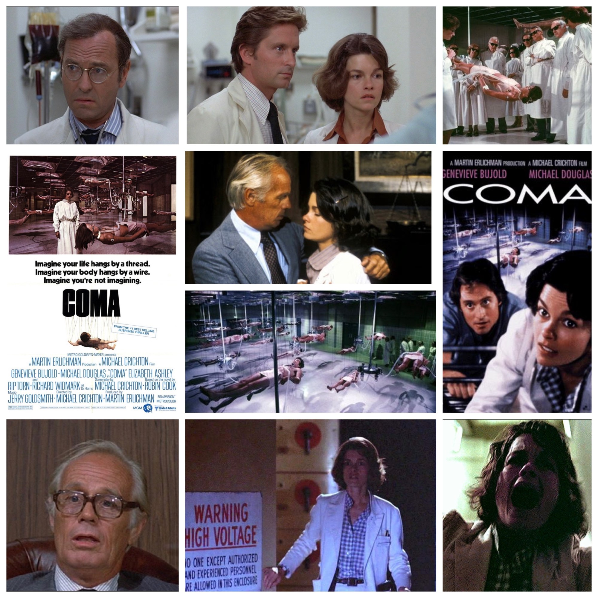 There’s nothing freakier than hospitals in Hollywood, or at least in the horror/thriller genre. Those long, deathly silent hallways that lead nowhere in particular, the cold, venereal steel tables, sheet white walls and lab coats and a general air of unrest. It doesn’t help the discomfort levels when there’s a diabolical conspiracy afoot and one can’t trust the doctors, those very harbingers of healing that are supposed to be ultimately trustworthy. Michael Crichton’s Coma takes full advantage of a nightmarish premise like this, perhaps too much in its final act, but the first two thirds are a clammy bad dream of worst case scenarios and extreme medical malpractice. Genevieve Bujold plays a junior doctor at Boston Memorial who slowly begins to notice a pattern of surgeries leading to suspicious comas, and the subsequent disappearance of the resulting vegetables. Her boyfriend and fellow doctor (Michael Douglas) brushes off her concerns as stress induced paranoia, the head of anesthesia (Rip Torn, so stoically intense he looks like one of those trolls in the hobbit that got turned to stone) casts threatening glances her way when she goes nosing around, and the hospital’s executive physician (Richard Widmark) seems amused when she brings the matter to him. These days it’s just a tad obvious that with those reactions that pretty much everyone except for her is in on the whole deal, but this was back in the late 70’s when certain narratives were still fresh. Besides, the fun isn’t in eventually getting to the bottom of things but in the chases, near misses and cat and mouse stuff along the way, and in terms of suspense this has some doozy moments. Bujold scours the bowels and ducts of the hospital and another nefarious rural institute like a spy in a complex labyrinth of boiler rooms, air intakes and empty rooms, while a heinous assassin chases her down and gets totally fucked up by this resilient gal. Douglas is billed alongside her but is only around in a glorified supporting turn, while Bujold, who is a gorgeous and incredibly dynamic leading lady, gets to do all the stunts, hurdles, combat scenes and handle the big revelations in panicked closeups. An interesting choice is to have no music at all for the first half of the film, and then when the first clue in the breadcrumb trail is discovered, the score kicks in. It’s a solid thriller that gets a bit overcooked when Widmark goes all Satan near the end and starts monologuing, but until then the pace is restrained, the mood vague and chilly. Watch for a shockingly young Ed Harris in his very first film role, and Magnum PI as an unfortunate victim of the evil plot. Good stuff.