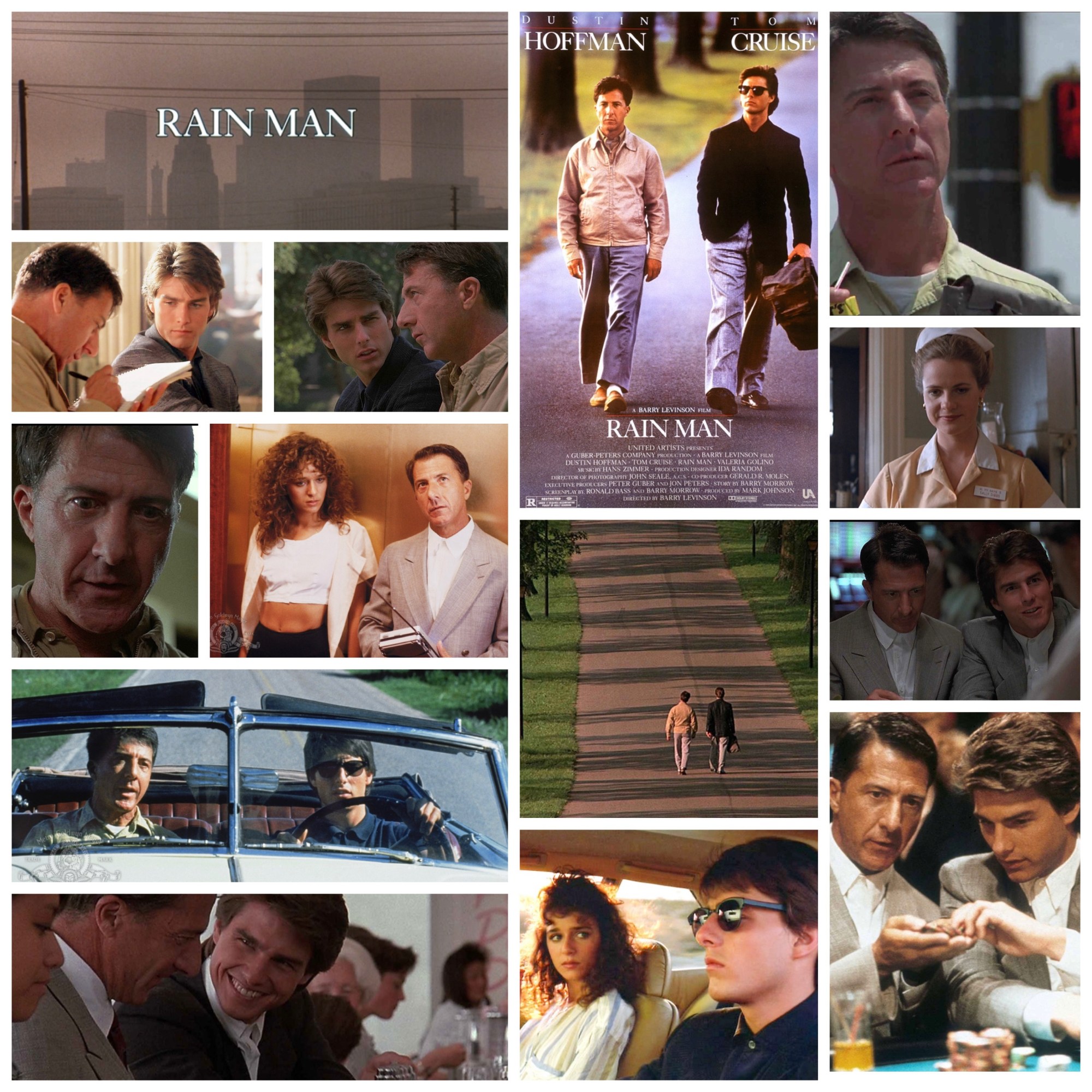 He plays Raymond here, a high functioning autistic man living in a care facility who is scooped up by his estranged younger brother Charlie (Tom Cruise). Charlie didn’t know he existed so it’s a bit of a shock and adjustment period for both, but really all he’s after is the three million inheritance money that’s gone into a trust in Raymond’s name, and all else he has to deal with results in frustration and lashing out. Charlie is a materialistic, caustic, self centred asshole when we meet him and one could argue who is in fact the more mentally challenged one given his immature behaviour. But that’s what character arcs are for, and Cruise’s here is something really special. At first he’s distant and short tempered with Raymon who, naturally, is tough to properly communicate with. But after spending time on the road together for weeks a bond forms and Charlie realizes that this man is the only real family he has left, and in a poignant series of interactions highlighted by one key conversation, the two become brothers again, or perhaps even for the first time, properly anyways. It’s a fantastic piece because the script treats these two with respect and let’s them be real human beings and not cloying plot devices. Cruise plays it hotheaded and then down to earth when the shift in his tone comes, I loved the scene best where he confronts Raymond’s doctor (Gerald R. Molen) about keeping his existence a secret this whole time. “It would’ve been nice to know I had a brother, and it would have been nice to be able to know him this whole time.” Cruise delivers the line offhandedly but the intention beneath cuts real deep. Hoffman is a series of mannerisms, behaviours and reactions that are clearly researched well, but he still lets the humanity and personality in Raymond shine through in every scene, he’s essentially multitasking with both sides of his brain and he fucking nails it. They’re supported by others including Valeria Golino as Charlie’s compassionate wife, Levinson himself as an irritating doctor prick, Lucinda Jenny, Beth Grant, Chris Mulkey and Bonnie Hunt who I’ve always had a huge crush on.