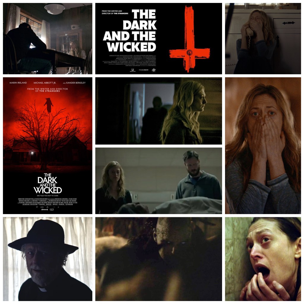 Bryan Bertino’s The Dark & The Wicked is very dark and very wicked indeed, and as bleak, hopeless and suffocating as a horror film could be. This is a film whose narrative fairly simple and let’s the complexities come out in performances and atmosphere while the story itself is as stark and ragged as the Texas farmland it takes place on. This is one of those drab, rundown farms where tired, rusted equipment lays strewn carelessly, the barns have long since shed their paint, it’s somehow perpetually dusk and the animals scatter about their paddocks nervously, clearly freaked out by something only they can see. The farm is owned by a family, and the father (Michael Zagst) is dying of some unnamed terminal illness but has unwittingly also been possessed by a particularly nasty demon who is making life hell for the rest of the family. I don’t say that lightly either, this is one seriously mean, horrifically malevolent entity who torments this poor clan (and by proxy the audience) no end when they’re already at their weakest and doesn’t relent until they’re thoroughly broken and ruined. The aging mother (Julie Oliver Touchstone) begins to lose her head and get delusional while her son (Michael Abbott jr) and daughter (Marin Ireland) try to hold the family and the homestead together by a thread against the onslaught of visions, hauntings, attacks and intimidation from this entity. There’s also an archaic preacher played by the great Xander Berkeley who is not much help to anyone and seems to be just as spooky as the demon itself as he unloads additional portent onto these already suffering folks. Bertino is also responsible for the 2008 horror classic The Strangers and he brings the same sense of trapped desperation and fading hope he did there, obviously with a much more illusory antagonist than masked killers. Ireland is a terrific actress who already made vivid impressions in Martin Scorsese’s The Irishman and this year’s criminally under-seen The Empty Man, she’s once again utterly immersed, convincing and committed to her role here, conveying anguish and impending loss to chilling effect. There’s an impossibly creepy strings score by Tom Schraeder that piles on a lot of atmospheric mood too. This is a slow burn, psychologically taxing, wretchedly bleak piece of American gothic terror that’s impressively made in every arena and will give seasoned horror vets a case of the spoops. Great film.
