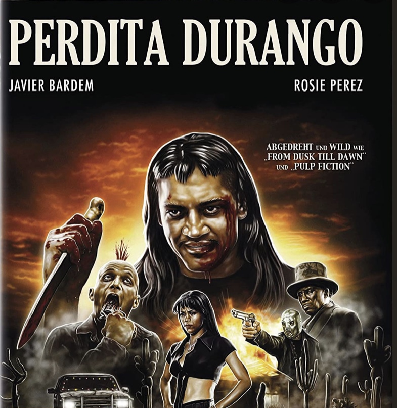 Even if I told you to picture a Mexican version of Natural Born Killers starring Rosie Perez and Javier Bardem with shades of voodoo mysticism, tons of pulpy brutal violence, transgressive taboo vibes and shades of From Dusk Till Dawn it wouldn’t prepare you for the visual audacity and narrative viscera that is Álex de la Iglesia’s Perdita Durango, a scrappy mid 90’s bit of cult nihilism based on a book by Barry Gifford. Gifford, you may recall, also wrote the book that David Lynch based Wild At Heart on so many of the same characters appear here for a kind of fascinating “Lynch/Gifford extended universe” vibe. Rosie Perez is Perdita Durango, a vivacious wayward outlaw girl who hooks up with Bardem’s Romeo, a psychopathic, voodoo practicing criminal who has been hired by evil crime kingpin Marcelo ‘Crazy Eyes’ Santos (Don Stroud) to facilitate the black market delivery of stolen human fetuses for cosmetic industry (I swear I’m not making the shit up). The two of them hook up along the way and get up to all sorts of lurid shenanigans including kidnapping a teenage couple (Harley Cross & Aimee Graham), raping them both and forcing them to tag along on their bloodthirsty swath of carnage and mayhem across Texas and the Mexico border. James Gandolfini shows up as a dogged DEA agent hellbent on stopping them and nailing Santos, and he hilariously gets hit by multiple speeding vehicles only to keep on truckin with a neck brace, then a leg brace and so on. There are also scattershot appearances from musician Screamin Jay Hawkins, filmmaker Alex Cox and a young Demien Bechir as a Vegas crime kingpin who meets a spectacularly gory end at the hands of Bardem. He is unbelievable as Romeo, I didn’t think I’d ever see a film where he has a more ridiculous haircut than his mop in No Country For Old Men but it happened, he looks like a an angry tumblr maven with his hyper cropped bangs here, and he tears into the role with a kind of unhinged ferocity and rambunctiousness I haven’t seen before in his mostly restrained career so far. Perez is like a Latin Harley Quinn as Perdita, all pissed off fury and sudden violent sexual energy in a total tour de force. This film won’t be for everyone: it’s incredibly subversive and deranged, there are explicitly shown instances of human sacrifice, rape, child abuse and domestic violence, not to mention the overall dose of supremely bloody gun violence and just a generaly lurid, deliberately unsavoury tone that stems from Gifford’s often shockingly tasteless yet somehow captivating work. But it’s a lot of fun too, there’s heaps of hilariously subtle dark comedy thrown in, a ballistic firestorm of a soundtrack, a host of deliriously over the top performances from the excellent cast and all manner of bizarre, arbitrary, surreal and eclectic sideshow-freak elements that make this an eccentric trip to hell with two demented individuals who you can’t decide whether to run from in horror or party with as they’re that much fun.