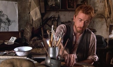 Robert Altman’s Vincent & Theo begins amid an industrial clang of a score by Gabriel Yared over a vibrant smear of colored oil paints which suddenly shifts to a Christie’s auction in which Vincent Van Gough’s 1888 still life, “Vase with Fifteen Sunflowers,” is going up for sale, climbing higher and higher in value as ridiculous amounts of money are outbid by even more ridiculous amounts. As the auction’s image gives way to a disheveled Vincent (Tim Roth coming in like a force of nature), crumpled up on a bed like a graying wet newspaper and awaiting a chewing out by his more responsible and nattily dressed brother, Theo (Paul Rhys perfectly camped out on the edge of an emotional outburst), the audience is given a sense of how much people are paying for pain and debasement when they’re investing in a Van Gough. For the disparity between a pauper’s life of misery and anguish and the revered saint of post-impressionistic art whose works can now fetch the price of a small island state is a vast one, indeed.