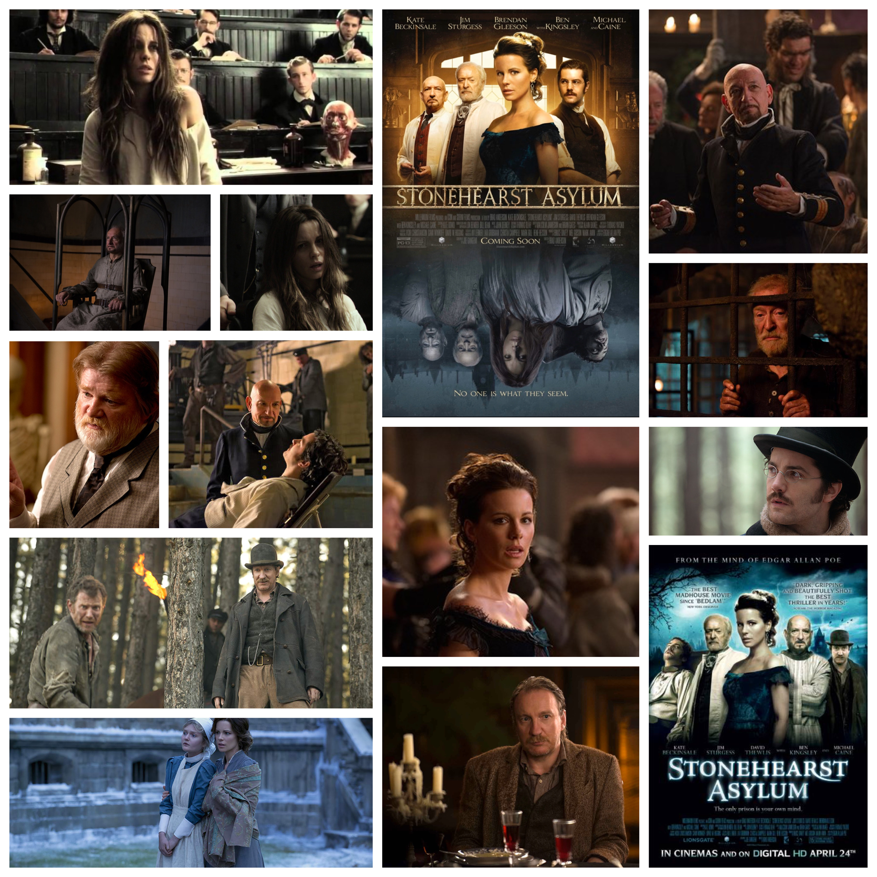 Based on a short story by Edgar Allen Poe, Jim Sturgess stars as an apprentice Alienist shipped off to the austere Stonehearst Asylum in rural Britain (actually stunning Bulgarian countryside) to learn the trade. Once there he discovers that the facility’s real staff have been overthrown by the patients in a violent revolution and now a cunning madman (Ben Kingsley doing a sly riff on his Shutter Island character) is impersonating the actual superintendent (an icy Michael Caine) and calling the shots. This is apparent right off the bat since the place seems to have no security protocol in place and oddballs of all shape and size cavort freely about the manor. One patient who doesn’t seem to be a hopeless basket case though is the mysterious Eliza Graves (Kate Beckinsale), a girl with a shady past and secrets up her sleeve.