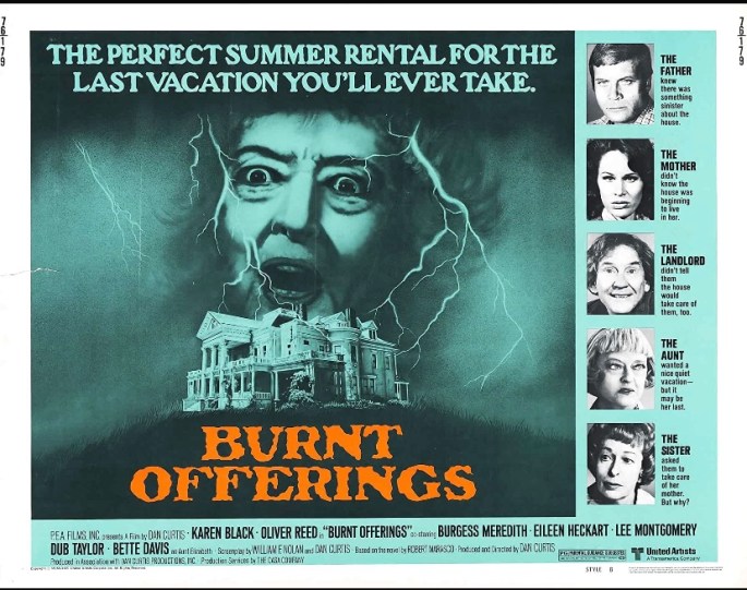 Burnt Offerings (that stellar title deserves a much better film) doesn’t do much as far as innovation goes in the haunted house genre but it’s serviceable enough as an atmospheric diversion and benefits from a very strong and frequently cuckoo bananas performance from the great Oliver Reed as a family man and writer who moves his wife (Karen Black) and son (Lee Montgomery) into a suspiciously creepy manor in the English countryside in a sort of caretakers capacity. Now we all know from collective cinema experience how ill advised it is for writers to move their families into empty large buildings with threatening auras, but hey that’s half the fun. They should have especially known better here though because they’re hired to house sit the place by the weirdest people imaginable, two creepy old goats played by a half mad Burgess Meredith and Eileen Heckart, and let me tell you if these two tried to hire me to look after their weird empty English house I’d run the other way, but then we wouldn’t have a story I suppose. The film hinges on a dynamic that consists of Reed trying to be steadfast and responsible but slowly succumbing to some Jack Torrence level madness while Black’s ineffectual wife blathers on in ditzy mania and the poor kid is stuck between them. There’s a highly effective sequence in the manor’s pool where playful, benign roughhousing between father and son turns unexpectedly violent and grim very fast and is a nice example of tension building and infused menace on Reed’s part. Bette Davis shows up in a rather forgettable role and there’s a spooky grinning valet driver who may or may not be a ghost that sows seeds of narrative and tonal unrest too. It’s nothing fancy, nothing new or noteworthy but as far as routine, atmospheric haunted house flicks with esteemed actors go, you could do worse. Streaming now on Shudder.