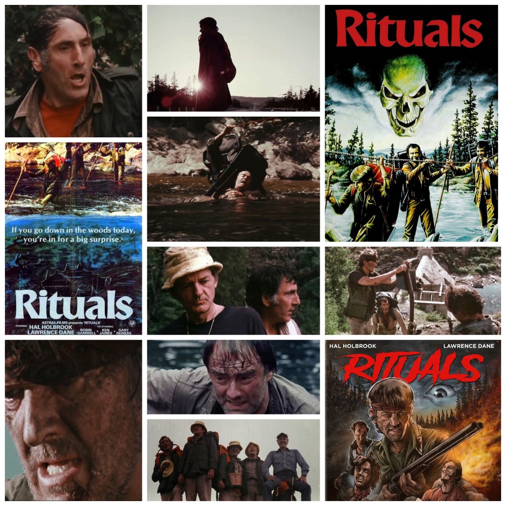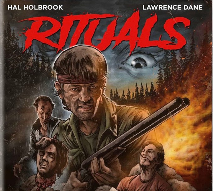I’ve had some gnarly camping trips into the Canadian wilderness myself, but none so brutal, backbreaking and harrowing as the Ontario expedition that five bickering middle aged doctors embark on in Rituals, a punishingly intense, staggeringly effective thriller that despite a low budget, is about as high impact as possible. The cast is headed up by the late great Hal Holbrook and Lawrence Dane, two pack leaders in a team of five career medical professionals who are so far from the white coats and fluorescent lit hallways they usually no doubt inhabit, on a ruthless trek through the harshest terrain made all the more strenuous by the fact that they are being tracked, hunted and terrorized by an unseen individual who knows the region, and the psychological complexity of predator vs prey, far better than these fellows. This obviously has a Deliverance vibe on paper but not only is it a far stronger film than that (Boorman’s piece is a tad over-celebrated in my book), it isn’t just that tired old ‘big city blowhards tormented by inbred backwood yahoos’, there’s an actual believable reason why this person has targeted them, revealed bit by bit as their heinous ordeal unfolds. What also makes this so effective is the writing and performances; every character is fully fleshed out and feels like a real human being instead of a token archetype of your classic group dynamic, thanks to a script that has both compassion and condemnation for its characters in the same complex stroke. These are genuine human beings and the actors, Holbrook and Dane in particular, play them uncannily well in perhaps the performances of their careers. Not to mention the lush, lake speckled Northern Ontario scenery that abruptly turns stark, threatening and very Mordor-esque later on in the third act to mirror the increasingly hopeless plight of the men wandering through this desolate and unforgiving realm. This is an exceptional film, with a few damaged reels (VHS lines and cigarette burns lovingly dot the celluloid landscape) and Shudder has done a great job restoring what it could into Blu Ray quality while retaining a frayed, Grindhouse visual aesthetic at the same time. Highly, highly recommended.