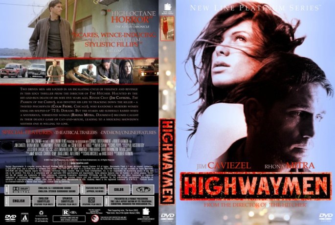 I love horror movies set on the road, it’s such a great breeding ground for paranoia, vehicular mayhem and fear of the great unknown. Setting out on a road trip is always an amazing feeling of freedom, but the vast interlacing network of desolate highways that lie just outside the structured, familiar peripheries of any big city ways have an innate, sleeping menace to them; anyone, or anything could be out there. Some of the best films in horror overall come from this idea, including Joyride, The Hitcher, Steven Spielberg’s Duel, Tarantino’s Death Proof, Roadgames and so many more. I finally got a chance to check out Robert Harmon’s Highwaymen and I can’t believe I didn’t sooner because it’s an absolute banger, and one that has always gotten terrible reviews and buzz, which to me is inexplicable. This has the hazy, moody early 2000’s thriller feel, an atmospheric yarn about a terrifying serial killer (Colm Feore) who murders woman with his souped up, rampaging Cadillac El Dorado and the lone man (Jim Caviesel) whose wife once fell under his tires, has now made it his quest to bring the monster down. He spends his days attentively scanning CB radio stations and trawling the vast nebula of backroads looking for any sign of this guy resurfacing, and when he does rear his hood ornament once again, the chase is on. An innocent woman (Rhona Mitra) and her ill fated friend (Andrea Roth) find themselves in the crosshairs of his malicious intent and Caviesel takes full advantage of the situation to try and stop him, with the help of an intrepid rogue traffic authority officer (Frankie R. Faison). Feore is intense as ever as the truly vile killer but what makes the character so fascinating is that without his car he is useless; So many years of disastrous collisions have left him a mangled multiple amputee who is wheelchair bound and uses fearsome homemade steel appendages to operate steering wheel, pedals and gearshift, giving him the appearance of some demented crippled cyborg, it’s quite the character choice for a villain. Director Harmon also did the original 1986 Hitcher film which is a classic and while there are shades of his original vision at work here, this is a different beast altogether. It’s moody, shot in deep saturated colours to illustrate the dusty days and inky black nights that hover over the rural roadmap, has a dark, portentous score by Mark Isham (also composed for Hitcher’86), tons of atmospheric unrest and profoundly brutal, stunningly reckless car chases that constantly threaten to spin wildly out of control into outright carnage and keep the viewer on edge splendidly. Powerful horror film.