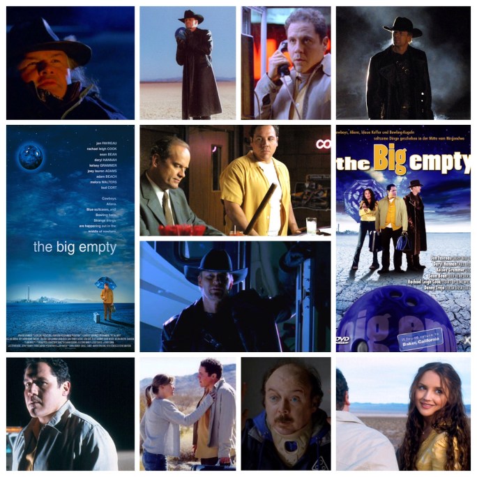 The Big Empty is a quirky, off kilter little flick that packs a backpack full of borrowed elements from the Coen brothers and David Lynch, before embarking on a perplexing outing into the Twilight Zone. That’s not to say it rips any of these artists off, and indeed it’s got a style and cadence all its own. It just loves other oddballs before it and wants to wear it’s influences proudly. Everyone’s favourite lovable schlub Jon Favreau plays John Person, a flailing, out of work actor. He’s presented with a dodgy proposition by his whacko neighbour Neely (eternally bug eyed Bud Cort). Transport a mysterious blue briefcase to a remote town in the Mojave Desert called Baker. There he will meet a much talked about, little seen individual called The Cowboy (Sean Bean), who will take the case off his hands. He agrees, as he must in order for us to have a film to watch, and heads out to the back end of nowhere. In any respectable piece like this, the town our hero visits must be populated by weirdos, eccentrics, dead ends, missed encounters and an abiding, ever present atmosphere of anomalous peculiarity. Right on time, he meets a host of charming characters, including Grace (Joey Lauren Adams), her sensual daughter Ruthie (Rachel Leigh Cook), Indian Bob (Gary Farmer), grouchy FBI Agent Banks (Kelsey Grammar), and a bunch of others including Daryl Hannah, Melora Walters, Jon Gries, Brent Briscoe, Adam Beach and Danny Trejo. He’s led from one head scratching interaction to the other, each step of the way proving to be a step behind the elusive Cowboy, with no form of coherence appearing to ease poor John’s bafflement. I was reminded of Jim Jarmusch, particularly his masterpiece Dead Man, perhaps because Gary Farmer appears in both, but most likely mainly due to the fact that both films follow a hapless Joe on a journey that doesn’t seem to be going much of anyplace, but holds interest simply by being bizarre enough. Favreau is the only one that doesn’t fit, the outsider whose laid back suburban affability creates friction with almost every individual he meets, all who seem to have wandered in from the outer limits of some other dimension. Sean Bean is relaxed, mercurial with just a dash of danger as The Cowboy, quite possibly the strangest person John meets. The film has unexpected jabs of humour too, which occasionally breach the surface of its tongue in cheek veneer of inaccessibility. Upon meeting Indian Bob, John inquires: “Are you Bob The Indian?”. Bob jovially retorts “No, I’m Lawrence the fuckin Arabian.” Gary Farmer brings the same cloudy, sardonic cheek he brought to the role of Nobody the Indian in Jarmusch’s Dead Man, which had much the same type humour as this one: little moments of hilarity buried like treasures amongst the abnormal. Sometimes I muse that films like these which seem to really go nowhere in high style are there simply to give your brain a workout in odd areas that it wouldn’t normally play in. Set up a voyage like this, lead the audience down a yellow brick road and arrive at.. well basically nowhere in particular, just to chuckle at your efforts to figure it all out, jab you in the ribs and say “Don’t take this shit too seriously, man!”. Or maybe not. Maybe there’s deeper meaning behind the meandering, that will reveal some holy significance. This one, though, I doubt it. It’s pure playtime.