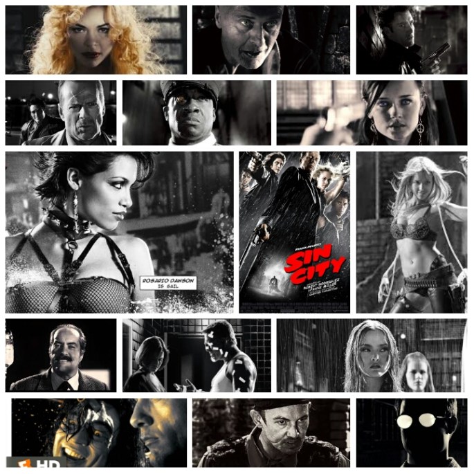 I remember seeing the edgy character posters for Robert Rodriguez’s Sin City hanging on the movie theatre wall when I was younger, having no idea what Sin City was or any knowledge of the books, but thinking they looked incredibly cool and enticing. Then the trailer came out, and it was all I could think, talk or breathe about for months leading up to its release. I was obsessed. When opening weekend arrived I got my dad to take me, and spent two unforgettable hours of cinematic nirvana in a dark auditorium that was packed to the gills with fans old and young alike, each basking in the delectable black, white and colour speckled glow of the piece unfolding in front of us. I had never seen anything like it, and it blew my system into sensory orbit like nothing had before. Around this time I was just discovering a lot of Rodriguez’s and Tarantino’s career, poring over pulp and crime thrillers from all across the decades as my love for cinema expanded, and this was something I just knew would be special as soon as I saw that first provocative teaser poster. The innovation and artistic ambition used by the ever resourceful Rodriguez and his team led to gleaming critical reception, a massive box office hit and one of the most gorgeous pieces of art in the motion picture realm. His decision to simply lift the still frames out of Frank Miller’s graphic novels was something that not every director would be able to go along with, let alone wrap their minds around (director’s are a finicky lot who always have thir own bright ideas, even when the source material is already gold). Rodriguez was so in love with the books that he envisioned them onscreen just the way they were drawn, and that’s pretty much what you get in the film. The pre-credit sequence sets the dark, vibrant, moody and impossibly lurid setting of Basin City, a rotting heap of corruption  where almost everyone is either corrupt, sleazy or just outright evil, and even the ones that aren’t deal out some pretty heinous bouts of violence themselves. The prologue involves girl in in a red dress (Marley Shelton) conversing with a mysterious, well dressed man (Josh Hartnett). The scene takes a turn for the dark and tragic, we zoom out as Rodriguez’s self composed gutter lullaby of a score grinds into motion, and the glowering opening credits trundle by, a moment of a pure joy for anyone watching. The film is separated into three central vignettes, each from a different volume of the comics. The first, and strongest, features a sensational Mickey Rourke as Marv, a hulking bruiser built like six linebackers and basically impervious to anything that could kill a human being. After a heavenly night with hooker Goldie (Jaime King), he wakes up to find her lying dead next to him, not a mark on her. This gives his set of talents a purpouse beyond bar fights and roughing up abusive frat boys, and he wages a war of ultraviolence in her name, to his grave if he must. There are some villains in these stories that seem to be dredged up from the very bottom of the last pit of hell, just the worst of humanity’s many deplorable qualities. Marv eventually runs into evil arch bishop Cardinal Roark (a devious Rutger Hauer) and insane cannibal ninja sicko Kevin (Elijah Wood will haunt your nightmares)., on his bloody quest. Rourke’s genius even shines out through 12 pounds of prosthetic makeup slapped all over his mug, and he captures the wayward warrior soul in Marv, a restless anger and old school, Charles Bronson esque charm by way of Frankenstein’s monster. His work is a great way to kick off the first third of the film, and the gravelly narration hits you right in the film noir nostalgia. The second segment is a lot more lively, with far more people running around, sans the melancholy of Rourke’s bit, and instead emblazoned with a war cry of a story starring Clive Owen as Dwight, a hotshot tough guy who gets on the wrong side of seriously scummy dirty cop Jackie Boy (a growling Benicio Del Toro having a ball) who likes to beat up on waitress Shelley (Brittany Murphy). Dwight pursues him to Old Town, a district run by lethal militant prostitutes lead by no nonsense Gail (Rosario Dawson can use that whip and chain on me anytime). Then everything goes haywire (I won’t say why), and Michael Clarke Duncan gets involved as a weirdly articulate, golden eye sporting otherworldly mercenary named Manute. This middle section is the one that feels most like a comic book, where as the other too have more of a noir flavor, like their old Hollywood roots. The third and most depraved chapter (which is no light statement in this town), sees aging Detective John Hartigan (Bruce Willis) lay his life down in order to protect young Nancy Callahan from a terrifying pedophile child killer (Nick Stahl) who is the spawn of despicable US Senator Roark (Powers Boothe sets up a cameo of the pure evil he would go on to exude with his much larger role in the sequel). Jessica Alba plays the adult version of Nancy, now an exotic dancer and once again in danger from Stahl, who now has some… interesting changes to bis appearance, courtesy of genital mutilation from Hartigan years before. It’s one demented set of stories that would be almost too much to take in the real world, but this is Sin City, a realm that exists in the darkest dreams of Raymond Chandler and his ilk, a seething netherworld of stunningly beautiful women, ghastly corruption and terror,  and good deeds that go unheralded in the night, bloody retribution perpetrated by antiheros and tragic scapegoats who know damn well what a pit of hell their town is, and that nobility is but a drop in the bucket of injustice they wade through on their way to violent exodus. The cast list goes on for miles longer than I’ve mentioned so far, but look out for Alexis Bledel, Carla Gugino, Michael Madsen, Jude Ciccollela, Nicky Katt, Nick Offerman, Tommy Flanagan and Devon Aoki as Miho, a deadly little hoo