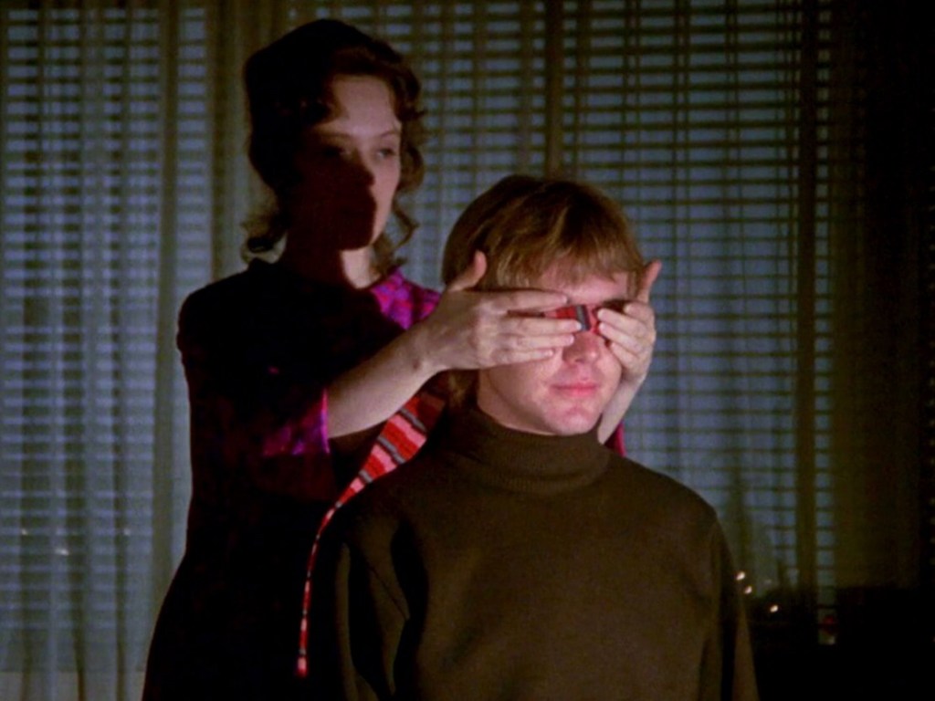 The McCarthy Woolworth is situated not sixty miles from Marfa where, in 1955, director George Stevens and company travelled to film portions of Giant, a film that would prove to be James Dean’s last. This proves to be a crucial point in time in the lives of those at the Woolworth, most especially high-strung Dean fanatic, Mona (Sandy Dennis), and Joe (Mark Patton), her co-worker and friend whose homosexuality is becoming a point of rancorous contention in the conservative town. A day-trip to Marfa in the hopes to be extras in the film leads to a secret that will be revealed twenty years later in the course of the reunion just as everyone else in the store’s purview will see their lives peeled back and exposed.