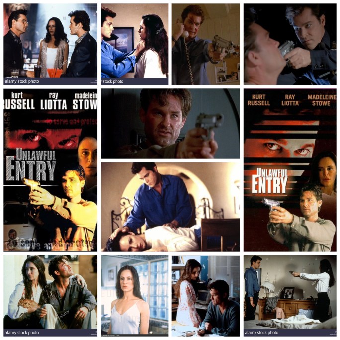 What if a cop decided that instead of serving and protecting civilians, he would instead stalk and terrify them? How would you deal with a scenario like that? Cops, after all, hold the power to arrest you or worse and unless you resorted to extreme measures, you’re kind of fucked. Jonathan Kaplan’s Unlawful Entry is a terrifying psycho thriller that explores this idea deeply and thoroughly enough to give any law abiding citizen nightmares. Kurt Russell and Madeleine Stowe play a nice yuppie couple whose home is broken into one night by a petty criminal. No one is injured, and the cop who shows up to investigate assured them that he’ll do everything in his power to keep them safe. The only problem is, this cop is played by Ray Liotta and in a film billed as thriller, that’s a dark omen. He’s affable and kind at first, but begins to envy this couple their suburban oasis, particularly placing an unnerving interest in Stowe, and pretty soon he’s gone full monster on them, with complete impunity no less. He wants her for himself, or maybe even isn’t sure what he wants but is nonetheless dead set on wedging himself into their lives like a juggernaut of violent, negative energy. Russell is helpless especially when the officer’s partner (Roger E. Mosley) wants nothing to do with their plight and won’t raise a hand against his comrade, perhaps out of fear himself. This is a scary film not just for the way it’s executed but for the fact that this *could* actually happen in real life. If you turn on the news or scroll through your phone’s feed you’ll see handfuls of headlines about cops getting up to all sorts of no good, reminding us that they too are only people and subject to fallacy and shortcomings. Liotta goes way way beyond that here though into outright monsterville, this is one of his trademark unhinged lunatic roles and instills straight up dread. It’s tough to watch scene after scene of Stowe being terrorized and traumatized by the guy and between and Tony Scott’s Revenge she really got put through a wringer early in her career, but if you’re the female lead in a horror thriller alongside Liotta, you can kind of see the storm on the horizon ahead of time. This is an intense, fucked up film that has razor sharp suspense, three very strong lead actors and a a spooky atmosphere. It also makes a great double feature with Jonathan Mostow’s Breakdown, another high strung Kurt Russell thriller where he yet again has to contend with a psycho who has his wife, albeit trading in rogue cops for rogue truckers. Both great films.